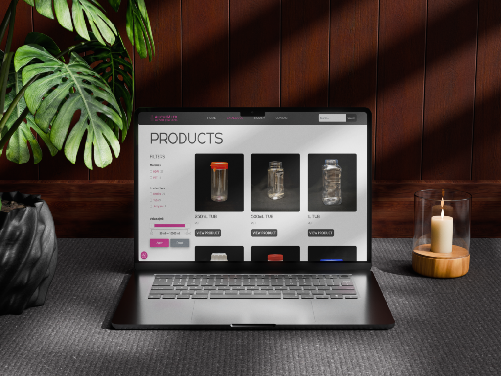 Allchem Malta Ltd required a new website that would clearly communicate their plastic manufacturing services while making it easy for potential clients to inquire about specific materials and products. The primary goal was to create a professional, user-friendly platform that would act as a functional business tool rather than just an online brochure.